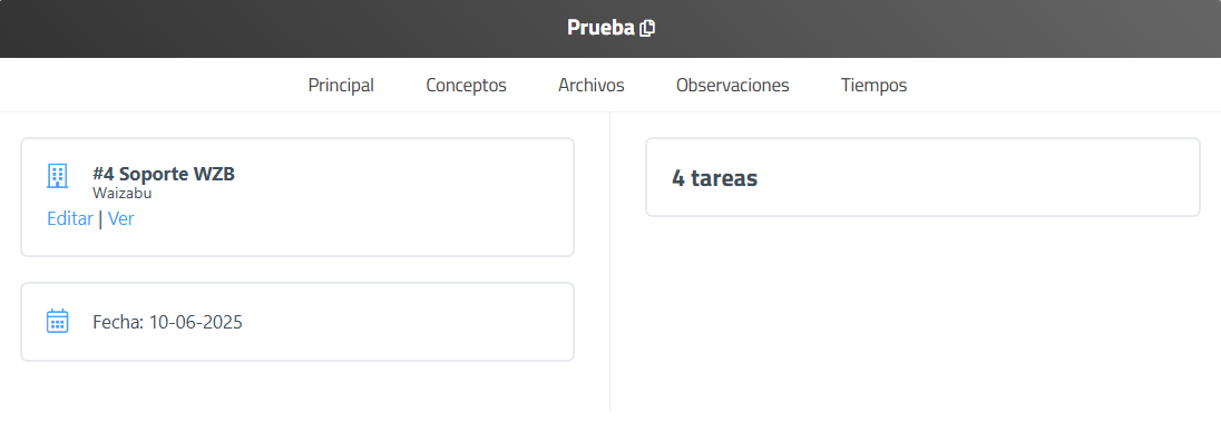 | Conceptos | Un concepto en cada fila. Destacado en negrita el nombre del concepto. Incluye un icono de líneas horizontales para reubicar verticalmente la posición de los conceptos con clic mantener, arrastrar y soltar. Muestra unidades, e importe total sin impuesto. |