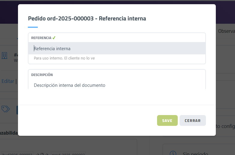 - Imagen pedido origen con referencia interna y descripción interna del documento