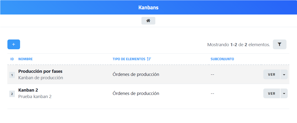 interfaz listado de Kanbans tipo botones |