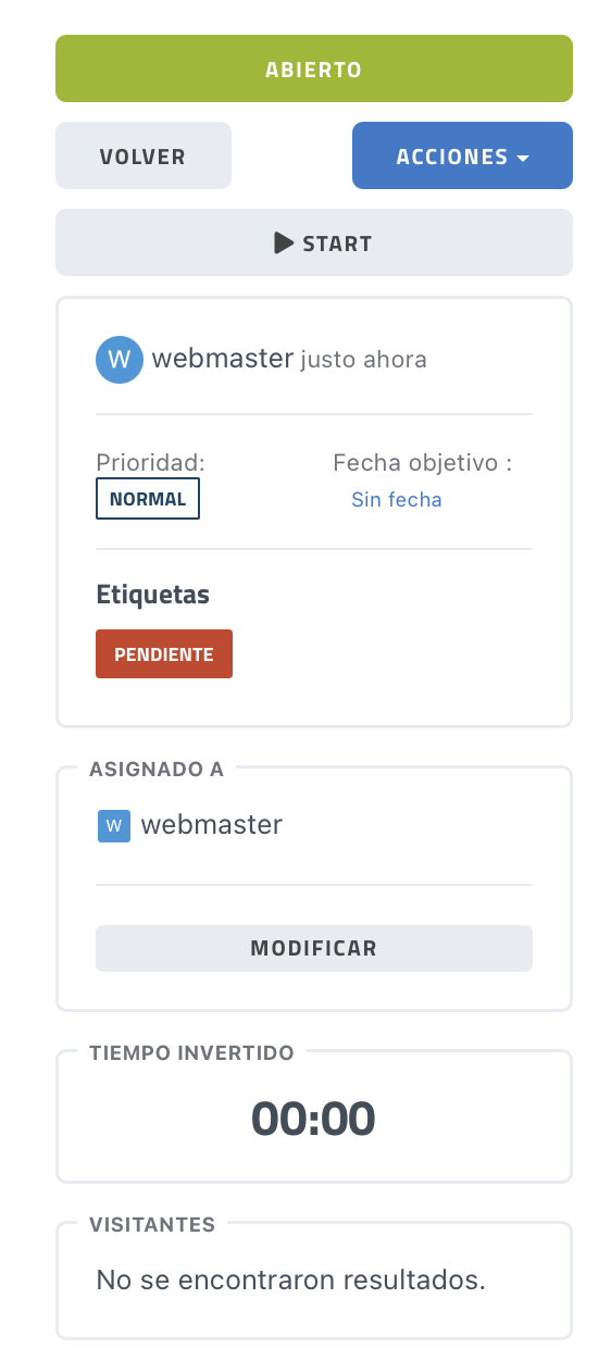 7. Tiempo invertido: Muestra el tiempo total registrado en el ticket, lo cual es útil para medir el esfuerzo dedicado.